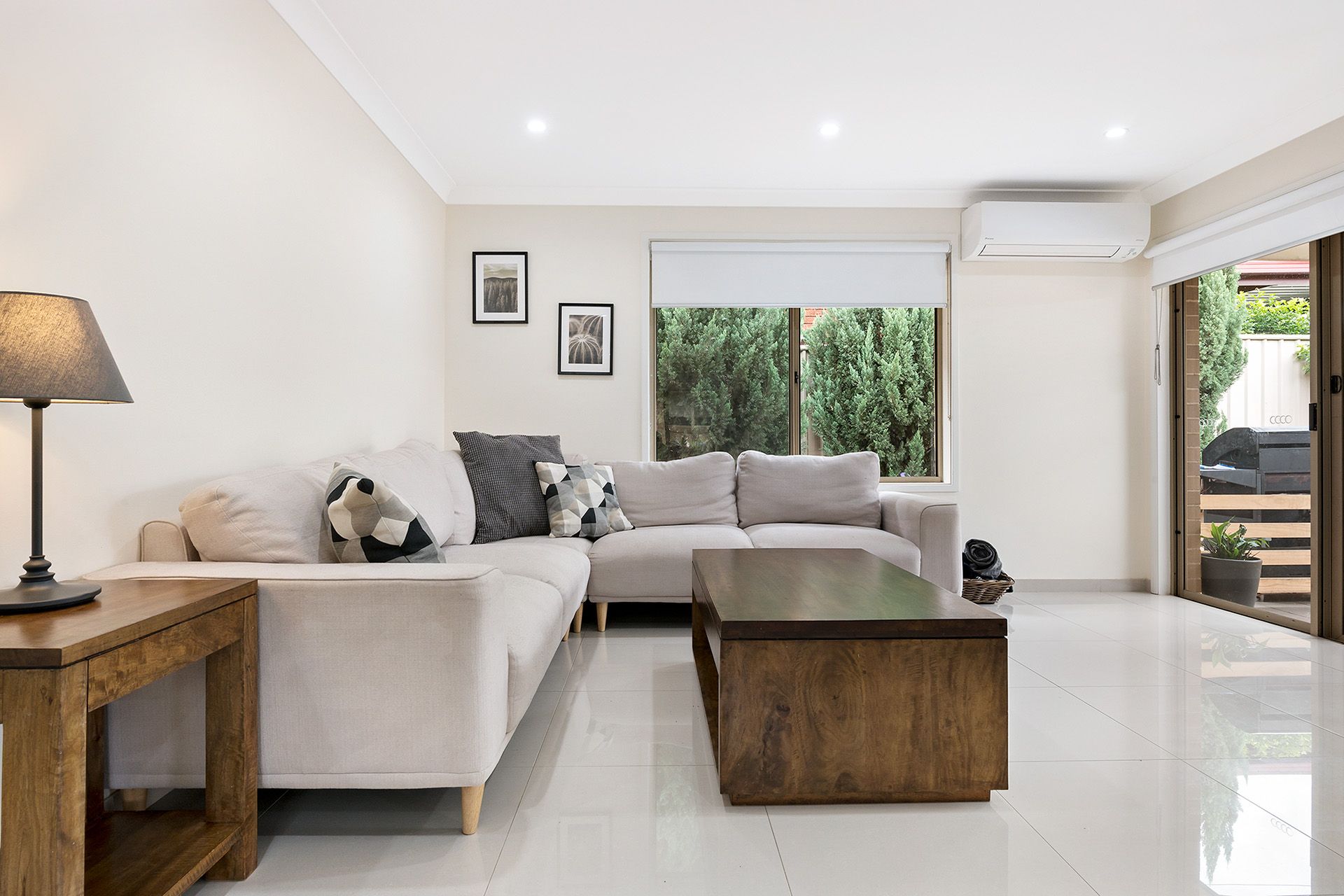 - Low maintenance courtyard with garden bed